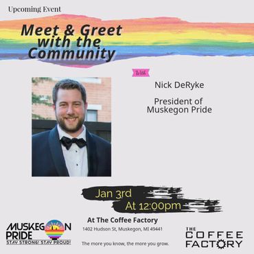 Muskegon Pride is dedicated to promoting understanding and advocating for LGBTQ issues through engaging in community events and activities. Join us for upcoming events like "Coffee With Friends," "Golden Years Lunch," "QPro+," and lively "Meet & Greets." Discover new connections and deepen your involvement in our vibrant community.
